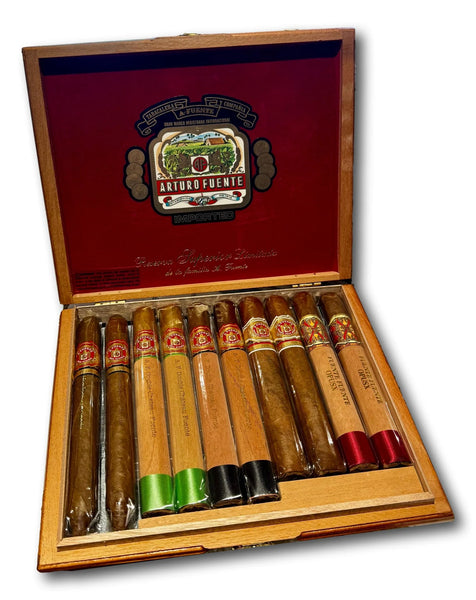 One of the most sought-after samplers available, this collection delivers exceptional value and prestige. Inside, you’ll find eight classic Arturo Fuente cigars—plus two coveted OpusX to elevate the experience even further.