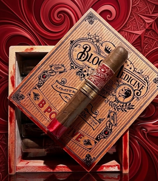 Blood Medicine B-Positive LE 2026 production is limited to 800 boxes (21-count) of each of the three sizes: 5" x 52, 5 1/2" x 56, and 6" x 54. The cigars are manufactured at the TacaNicsa factory in Esteli, Nicaragua, home to such Crowned Heads brands as Mil Días, Mil Días Maduro, and Juárez, under the supervision of Don Eradio Pichardo. Shipping will begin at the end of this month.
